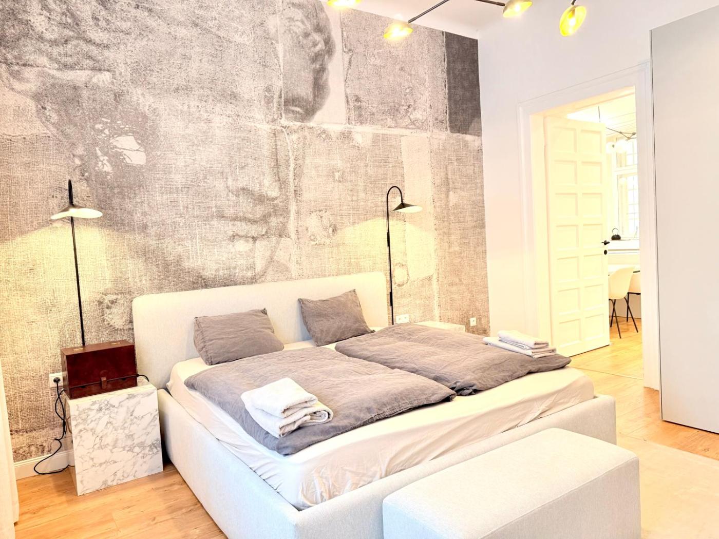 Two-Bedroom Apartment. Featuring a private entrance, this spacious apartment also comprises 1 living room, 2 separate bedrooms and 1 bathroom with a shower. Meals can be prepared in the well-fitted kitchen, which comes with a stovetop, a refrigerator, a dishwasher and kitchenware. This apartment features a washing machine, flat-screen TV with streaming services, ancourtyard view, as well as chocolate for guests. The unit offers 2 beds.